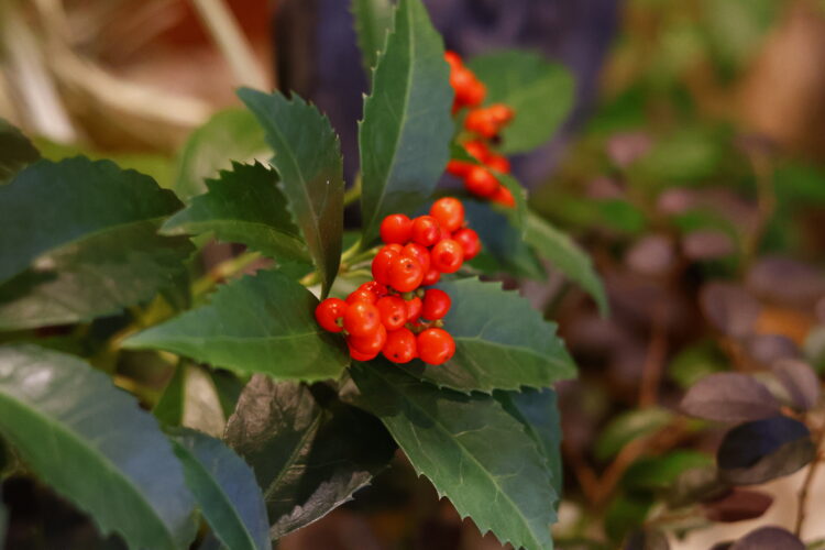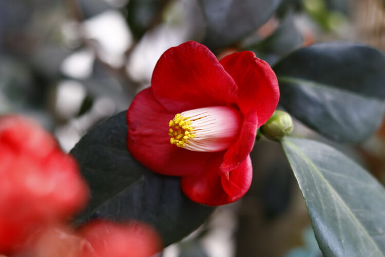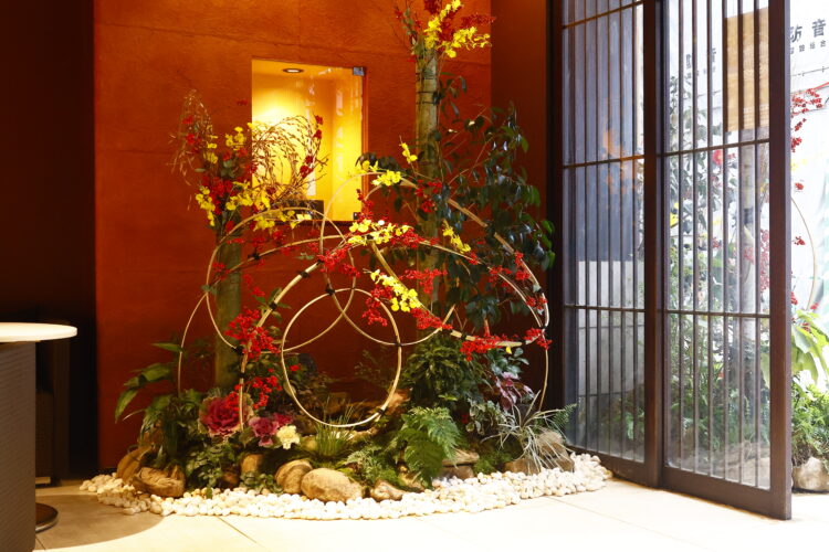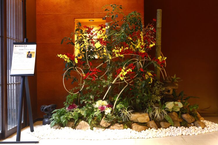 新春の晴れやかなお花や竹細工を残しつつ、お正月が過ぎ、少し落ち着いた雰囲気の坪庭になっています メインの椿も蕾に赤色がのぞきはじめ、これから咲く姿が楽しみです ぜひ、浜町店の坪庭で季節の移ろいを感じてみてください メインの花・・・ハボタン、センリョウ、マンリョウ、ツバキ